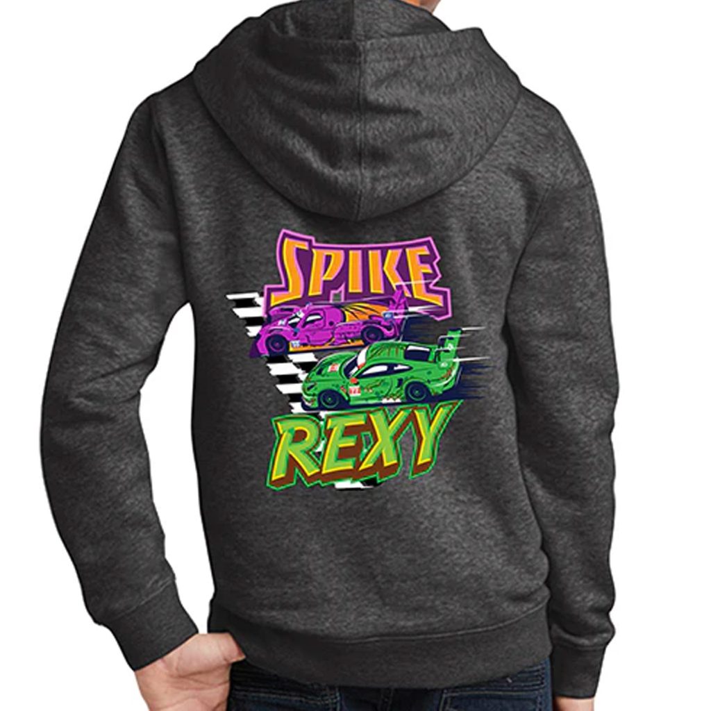 Stay cozy and show your AO Racing pride with this stylish adult hoodie featuring Rexy and Spike! The front has the AO Racing logo flanked by the lovable Rexy and Spike mascots in vibrant green and purple, adding a fun and playful touch. The back brings the action to life with Rexy and Spike in […]